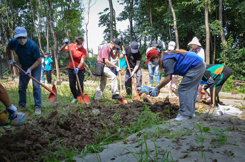 居民代表们拿起铁耙子、铁铲,给闲置的试验田翻土、体验种植的乐趣。图片来源:常青花园社管办
