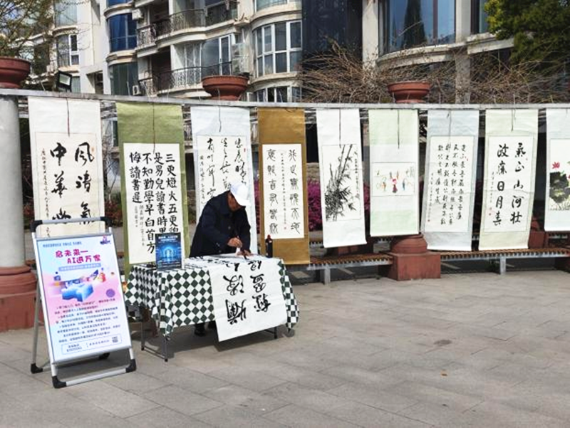 活动现场,由社区居民创作的50余幅书画作品集中亮相,涵盖樱花写意山水、诗词书法等主题,特邀书法老师现场挥毫泼墨,引得围观居民纷纷赞叹。展览区前,居民们或驻足细品画作意境,或举机拍摄佳作细节,更有书画爱好者与创作者探讨技法、交流心得。社区文艺骨干黄阿姨表示:“通过作品展,不仅展示了大家的才艺,更让邻里之间多了一份艺术共鸣。”