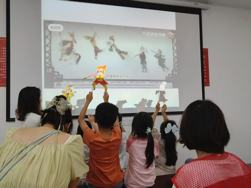 非遗皮影环节备受期待。亲子们共同动手制作皮影,从裁剪、拼接再到装饰,每一步都充满创意。当一盏盏灯光亮起,亲手制作的皮影在幕布上灵动跳跃,大家一起演绎《唐僧骑马咚啦个咚》,孩子们兴奋地操作着皮影角色,讲述着熟悉的故事,感受着非遗文化的独特魅力。