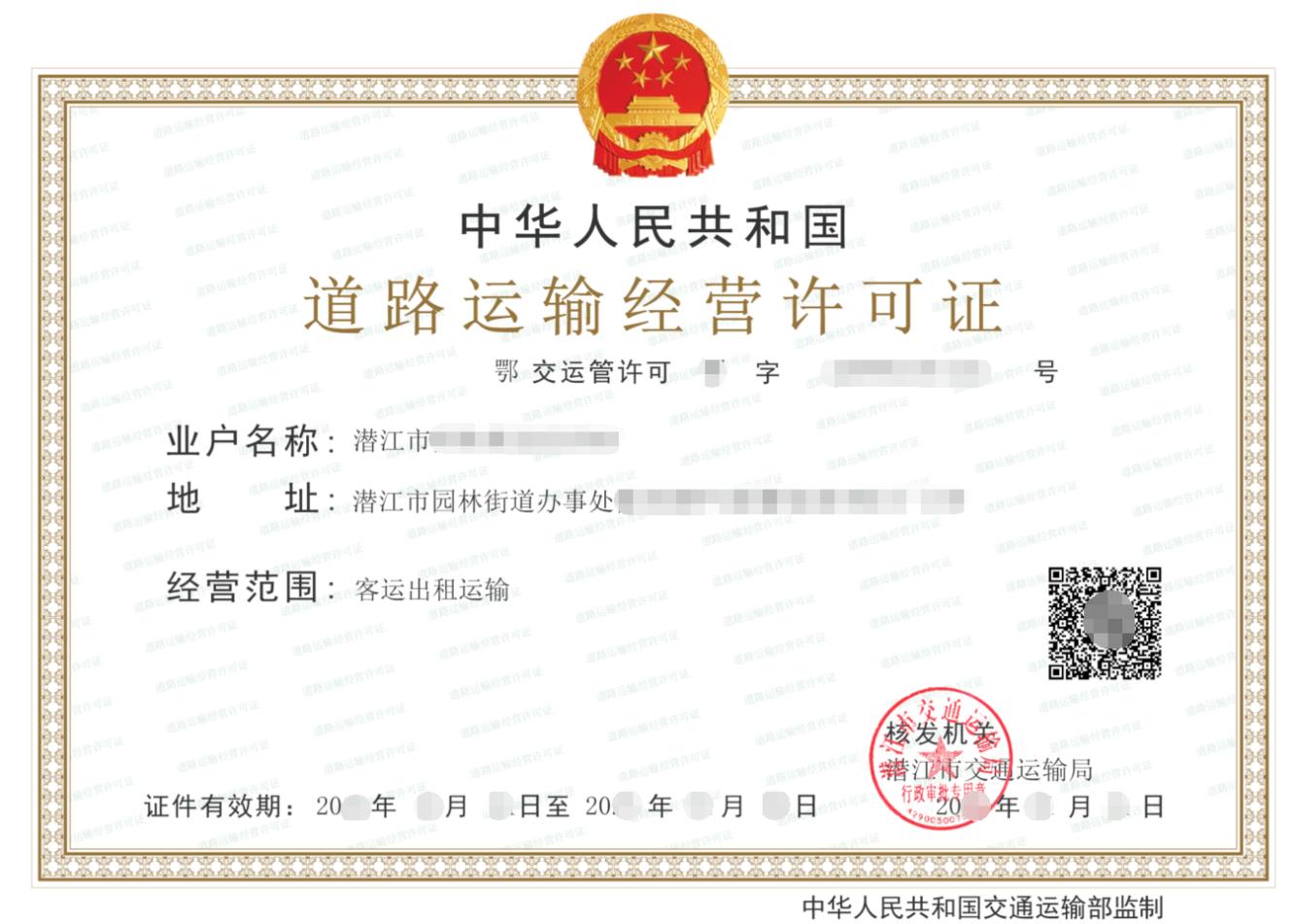 湖北省道路运输电子证照样式
