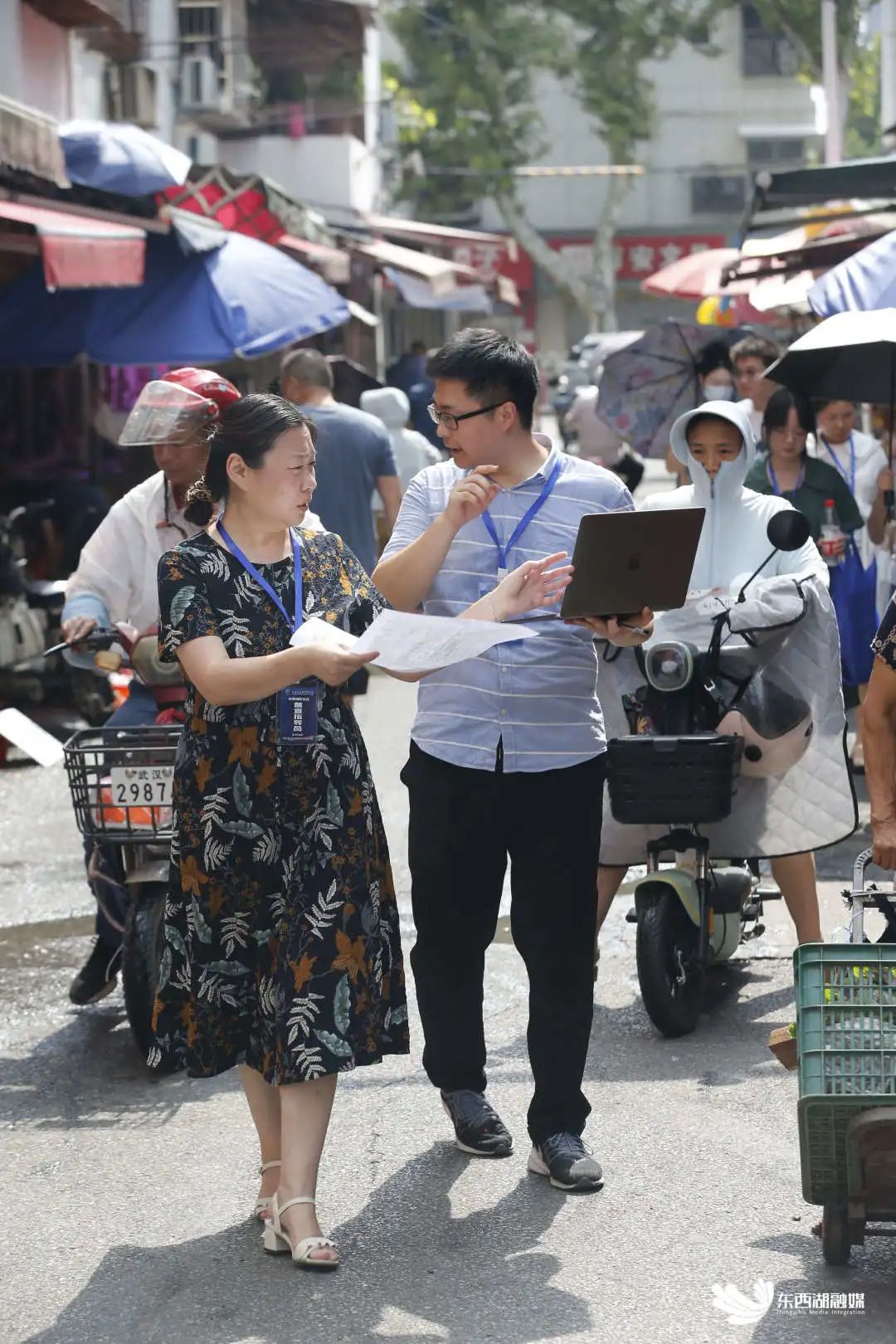 开放式的菜场摊位众多,人流量大,给核查工作带来了一定困难。陈瑞衡一家家上门查看,核对可能有经营业态的建筑物是否遗漏、建筑物信息是否完整、普查小区划分是否符合工作要求。对于一些“隐藏”的市场主体,比如写字楼里没有门面的个体户,普查人员需要“扫楼”,确保普查对象尽在“掌握”中。