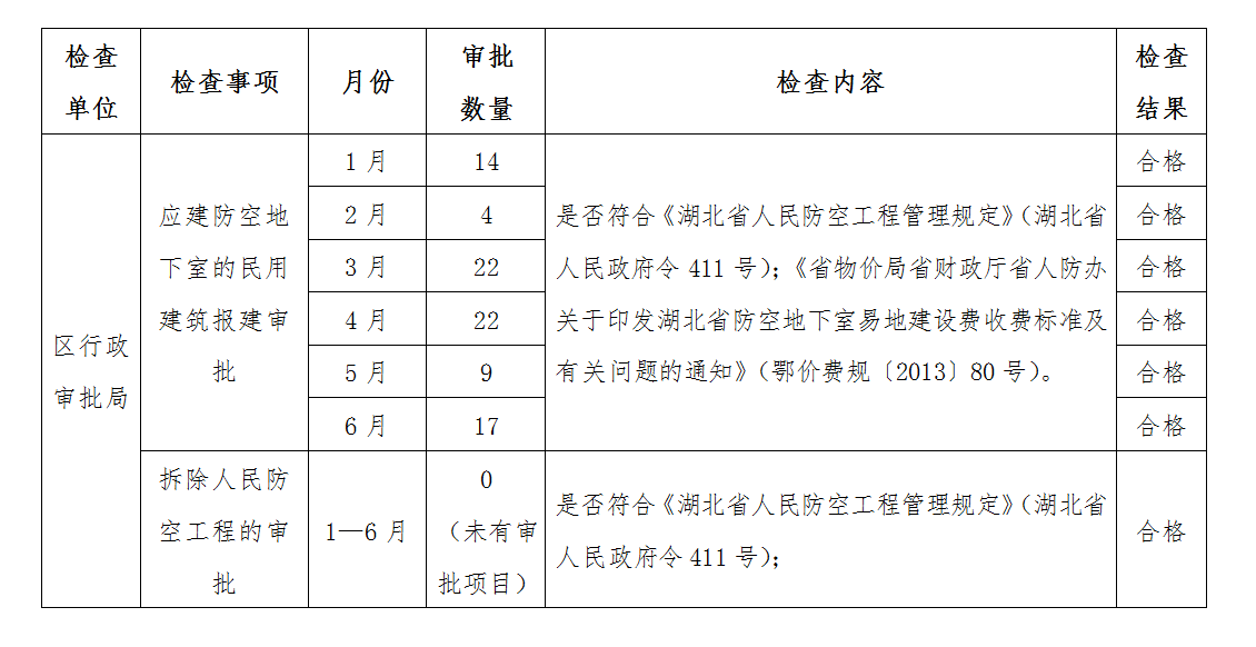 2021年上半年应建防空地下室的民用建筑报建审批、拆除人民防空工程审批 “双随机、一公开”检查结果公示
